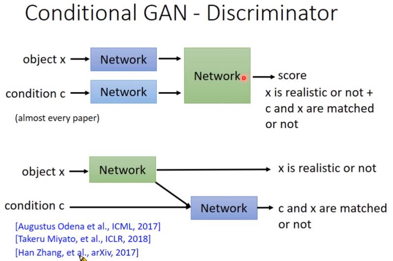 - 问题:没有监督之后,generator可能会生成很真实,但不满足条件的图片