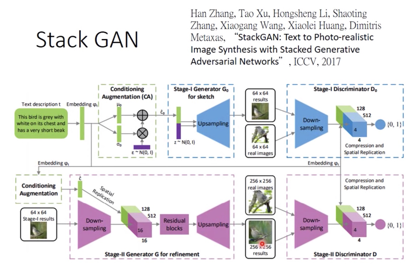 - stack_GAN,GAN直接生成大图的话会比较模糊,所以用两阶段的方法